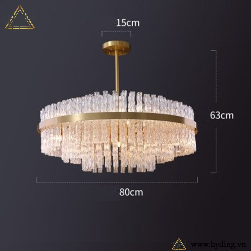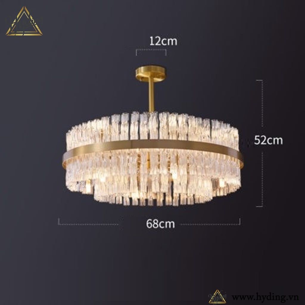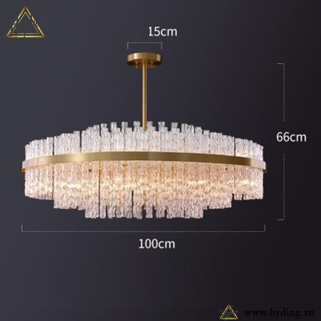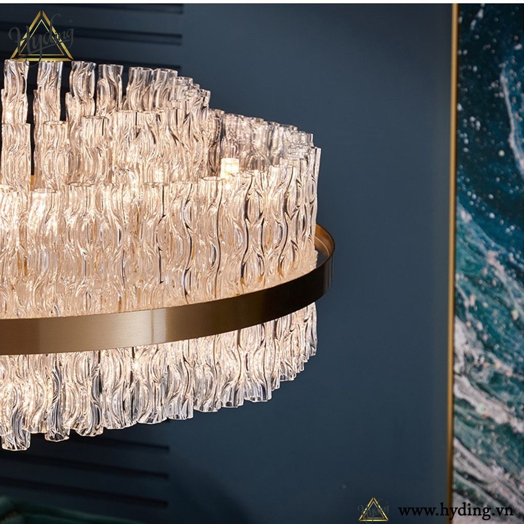 Chất liệu: Khung đồng mạ, pha lê dạng sóng