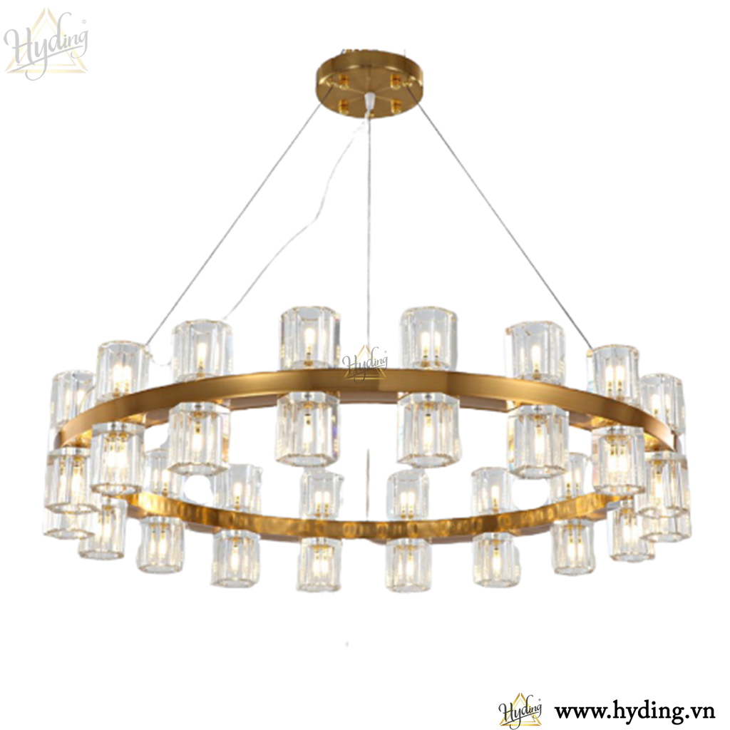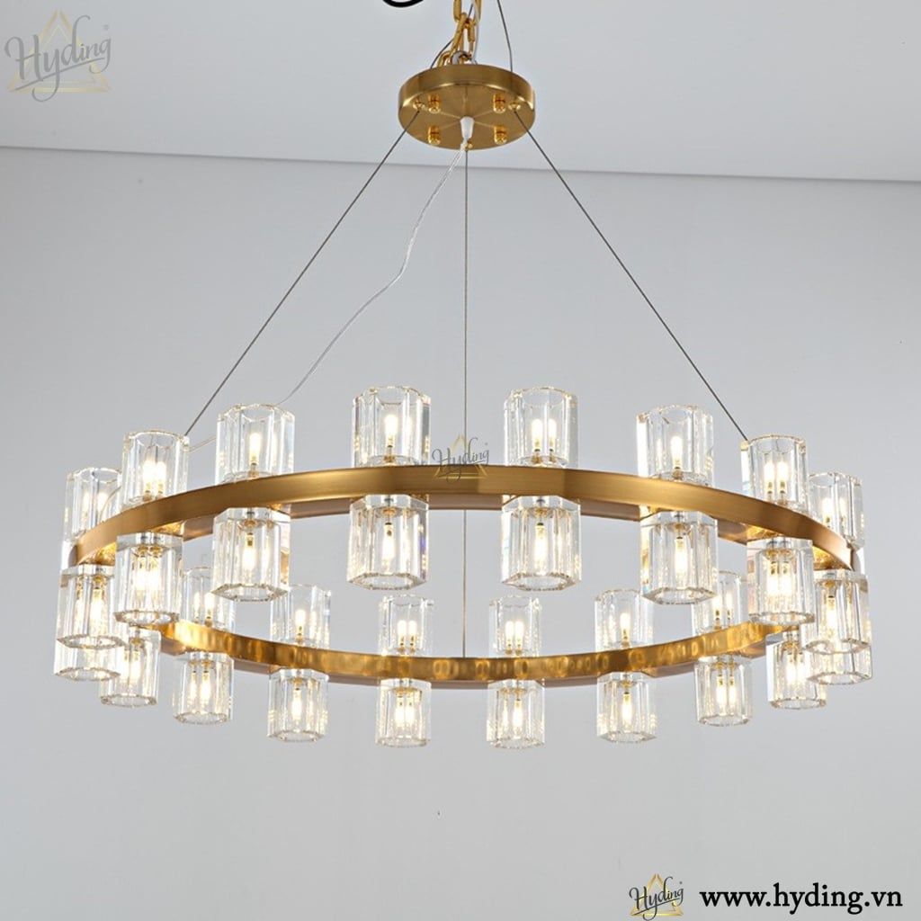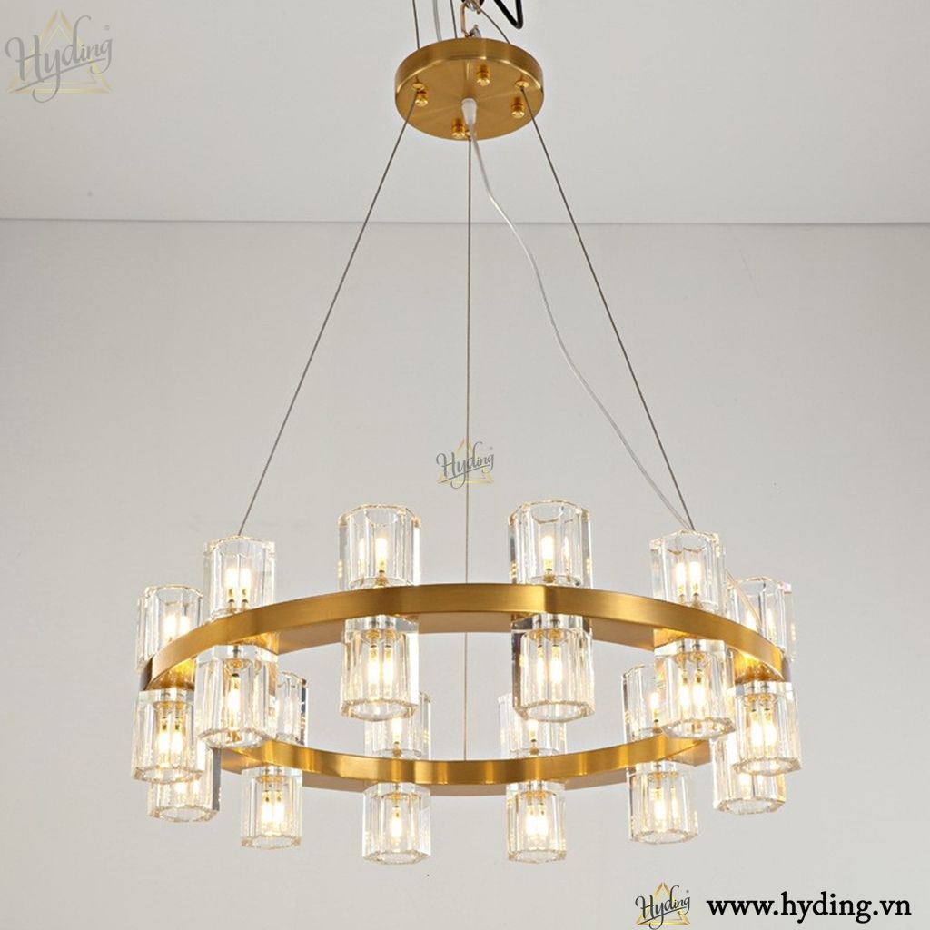 Chất liệu: Khung đèn mạ đồng / chao thuỷ tinh trong suốt.